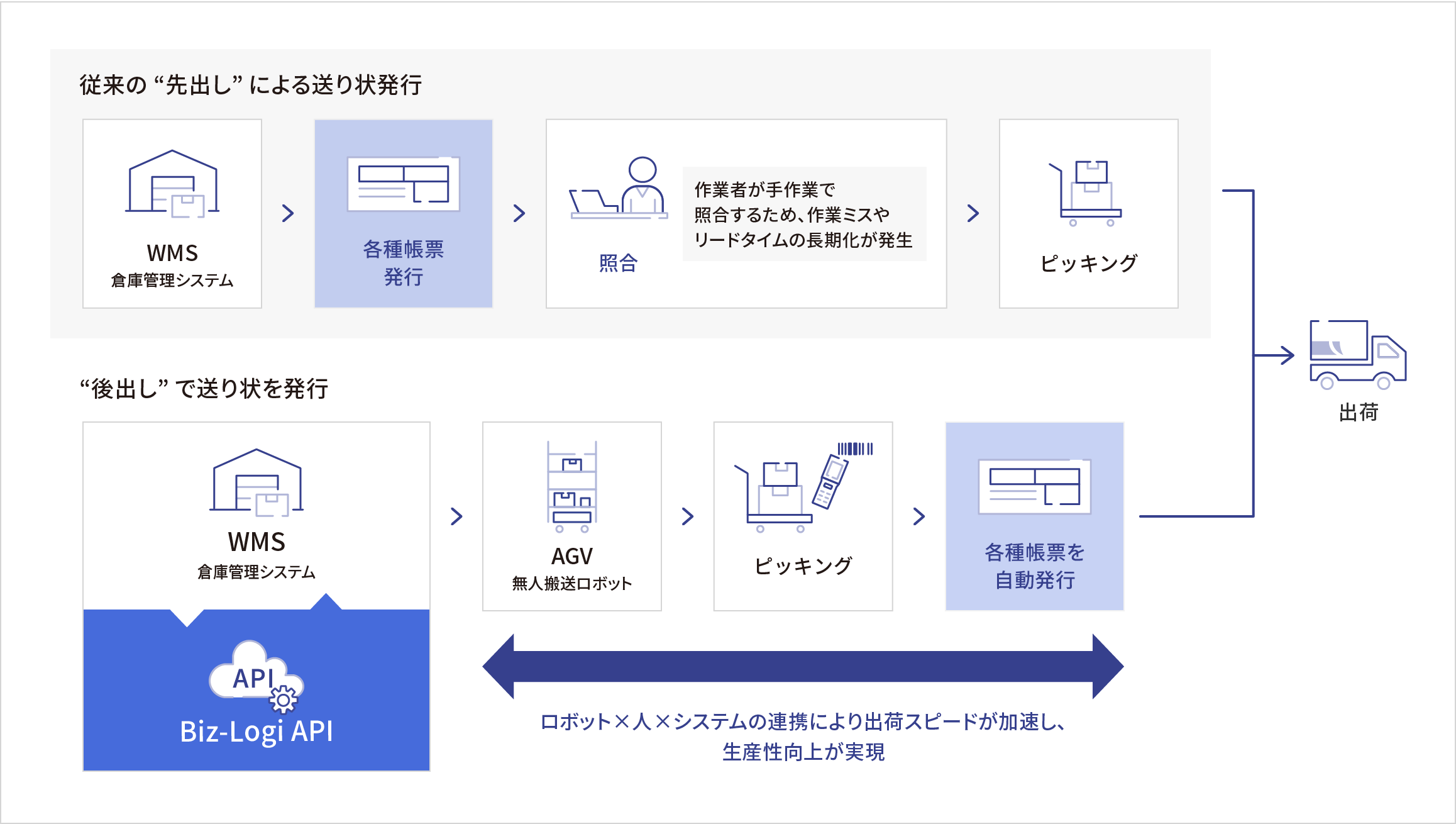 - Biz-Logi APIで商品スキャン後に帳票を”後出し”自動発行。AGV連携で作業の手間を削減し、出荷処理を高速化